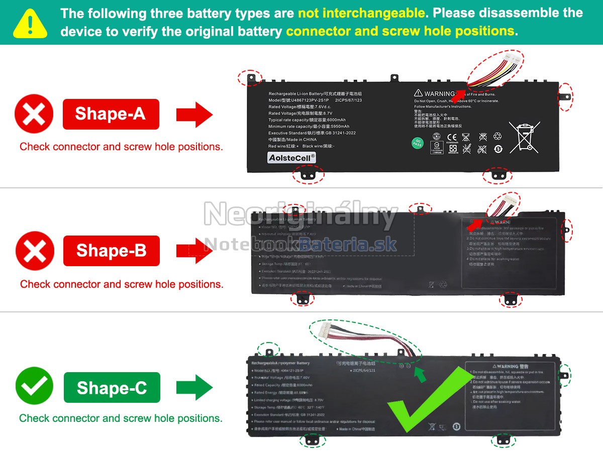 Každá z našich batérií pre notebooky Acer 4964121-2S1P prešla certifikátmi EVPU, CE, GS, RoHS, ISO9001:2015 a ďalšími. Okrem toho, že sú plne kompatibilné, majú tiež inteligentné ochranné opatrenia proti preťaženiu, nadmernému vypúšťaniu a prehrievaniu kvôli väčšej bezpečnosti. Okrem toho je každá náhradná batérie Acer 4964121-2S1P pred odchodom z továrne podrobená sérii testov. Na predaj sú povolené iba výrobky, ktoré spĺňajú špecifikácie.