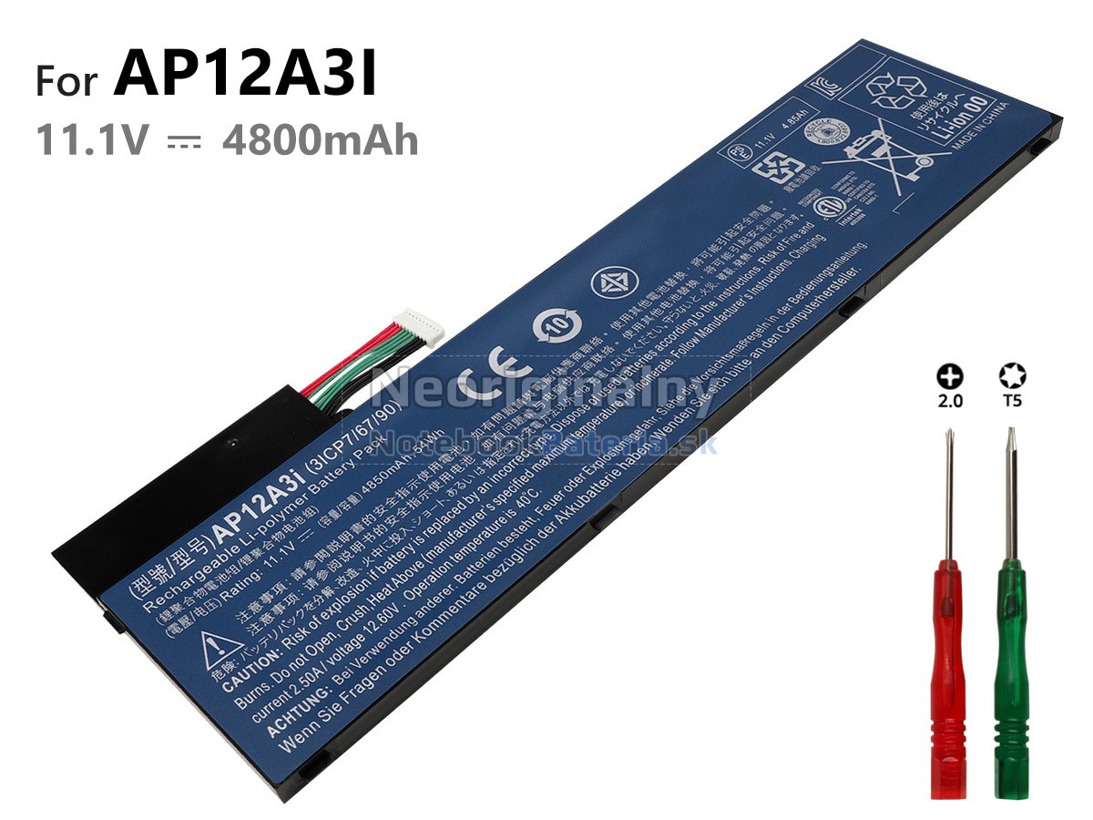 3Ak nebudete používať notebook Acer po dlhú dobu, vyberte batéria KT.00303.002 a uložte ju na chladnom a suchom mieste. Nezabudnite ho nabiť najmenej každé tri mesiace.