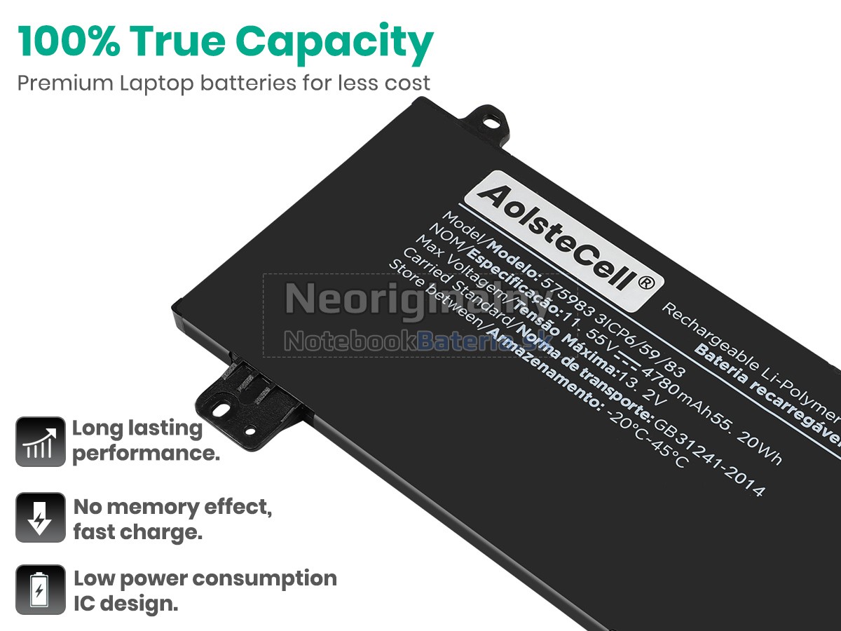 Každá z našich batérií pre notebooky AolsteCell 575983 prešla certifikátmi EVPU, CE, GS, RoHS, ISO9001:2015 a ďalšími. Okrem toho, že sú plne kompatibilné, majú tiež inteligentné ochranné opatrenia proti preťaženiu, nadmernému vypúšťaniu a prehrievaniu kvôli väčšej bezpečnosti. Okrem toho je každá náhradná batérie AolsteCell 575983 pred odchodom z továrne podrobená sérii testov. Na predaj sú povolené iba výrobky, ktoré spĺňajú špecifikácie.