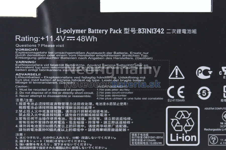 Vysokokvalitná náhradná batéria do notebooku pre Asus B31N1342(3ICP7/60/82)