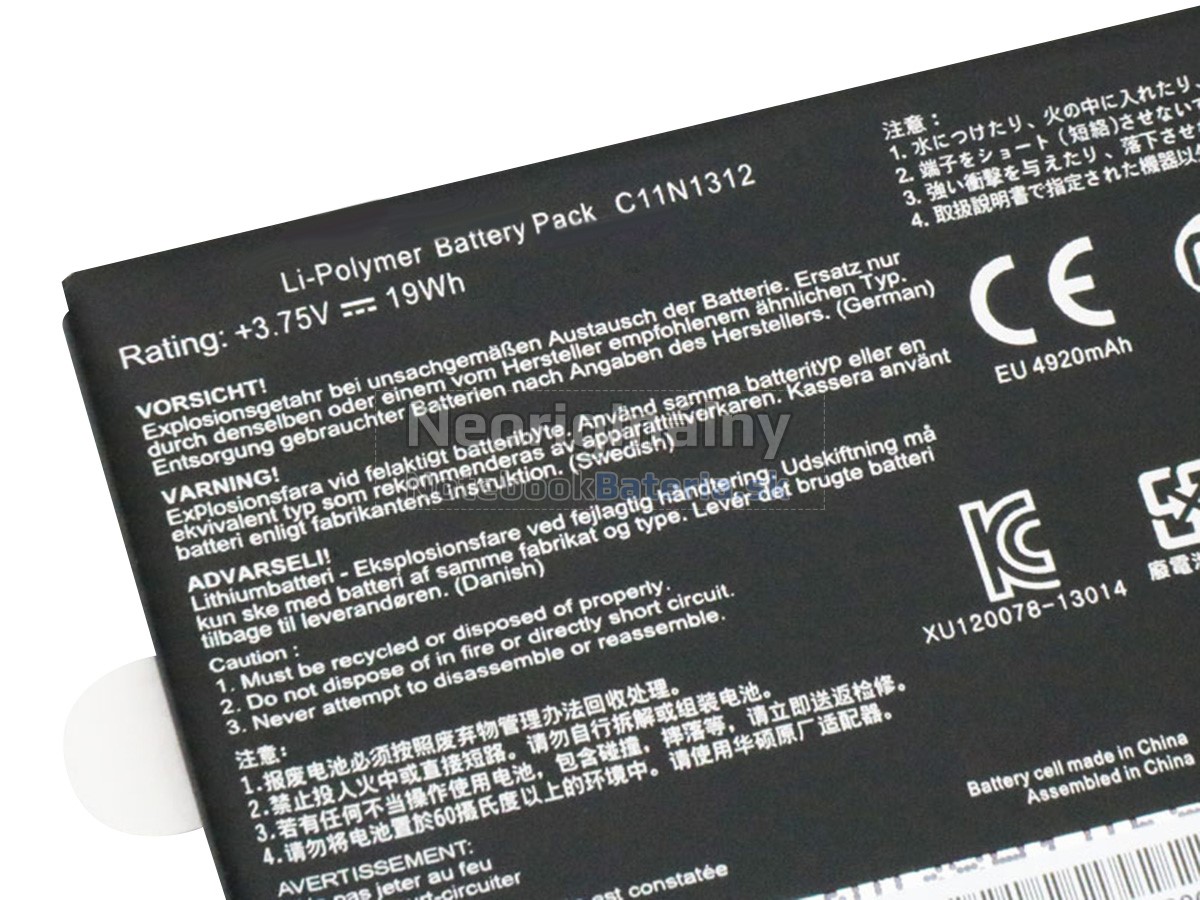 Každá z našich batérií pre notebooky Asus C11N1312 prešla certifikátmi EVPU, CE, GS, RoHS, ISO9001:2015 a ďalšími. Okrem toho, že sú plne kompatibilné, majú tiež inteligentné ochranné opatrenia proti preťaženiu, nadmernému vypúšťaniu a prehrievaniu kvôli väčšej bezpečnosti. Okrem toho je každá náhradná batérie Asus C11N1312 pred odchodom z továrne podrobená sérii testov. Na predaj sú povolené iba výrobky, ktoré spĺňajú špecifikácie.