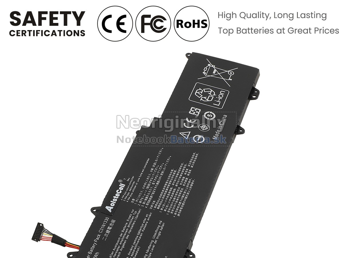 Každá z našich batérií pre notebooky Asus C31N1330 prešla certifikátmi EVPU, CE, GS, RoHS, ISO9001:2015 a ďalšími. Okrem toho, že sú plne kompatibilné, majú tiež inteligentné ochranné opatrenia proti preťaženiu, nadmernému vypúšťaniu a prehrievaniu kvôli väčšej bezpečnosti. Okrem toho je každá náhradná batérie Asus C31N1330 pred odchodom z továrne podrobená sérii testov. Na predaj sú povolené iba výrobky, ktoré spĺňajú špecifikácie.