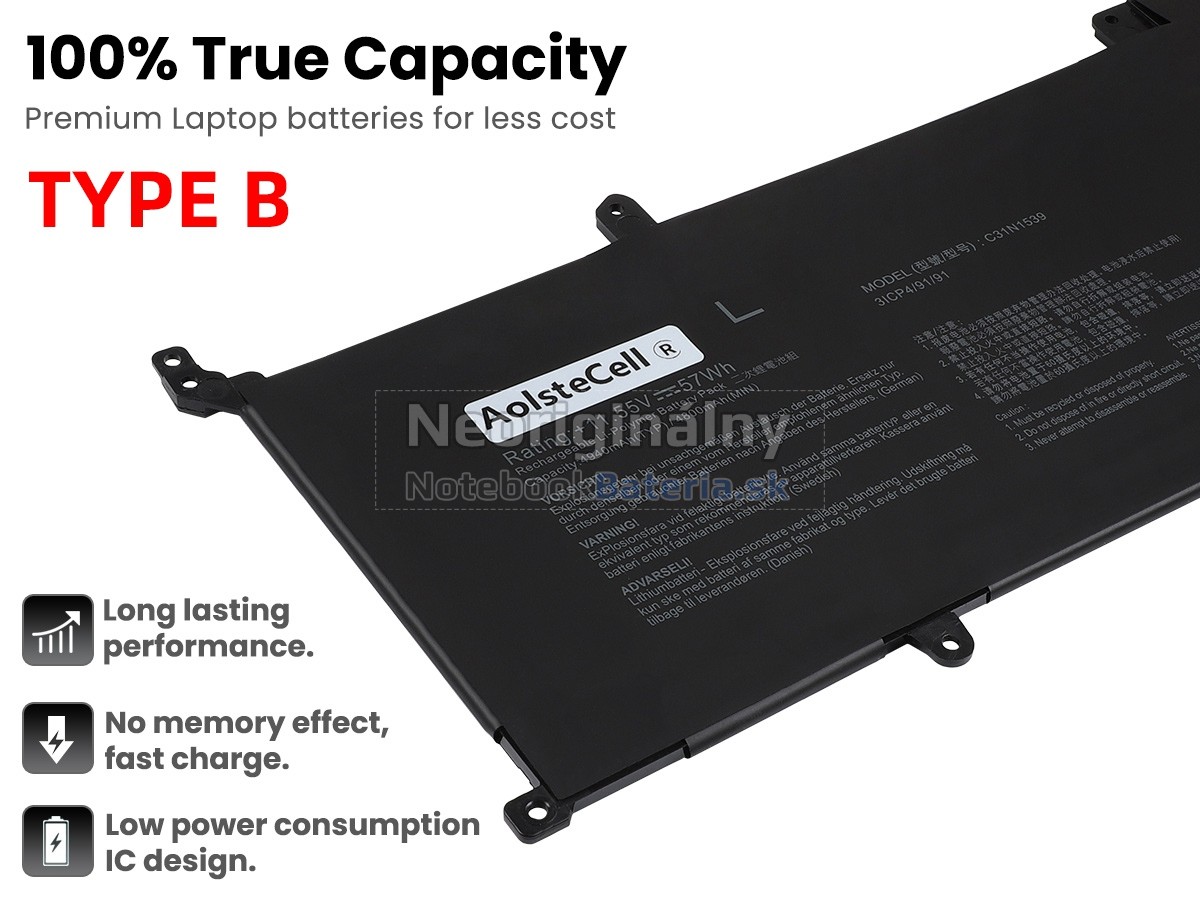 3Ak nebudete používať notebook Asus po dlhú dobu, vyberte batéria C31N1539 a uložte ju na chladnom a suchom mieste. Nezabudnite ho nabiť najmenej každé tri mesiace.