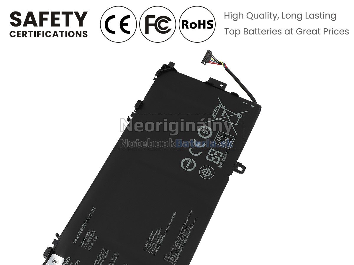 Každá z našich batérií pre notebooky Asus ZenBook 13 UX331FAL prešla certifikátmi EVPU, CE, GS, RoHS, ISO9001:2015 a ďalšími. Okrem toho, že sú plne kompatibilné, majú tiež inteligentné ochranné opatrenia proti preťaženiu, nadmernému vypúšťaniu a prehrievaniu kvôli väčšej bezpečnosti. Okrem toho je každá náhradná batérie Asus ZenBook 13 UX331FAL pred odchodom z továrne podrobená sérii testov. Na predaj sú povolené iba výrobky, ktoré spĺňajú špecifikácie.