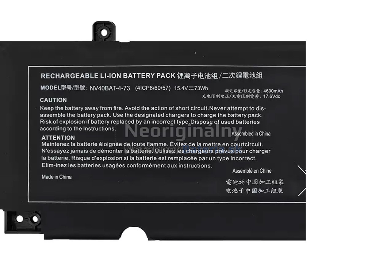 3Ak nebudete používať notebook Clevo po dlhú dobu, vyberte batéria NV40BAT-4-73 a uložte ju na chladnom a suchom mieste. Nezabudnite ho nabiť najmenej každé tri mesiace.