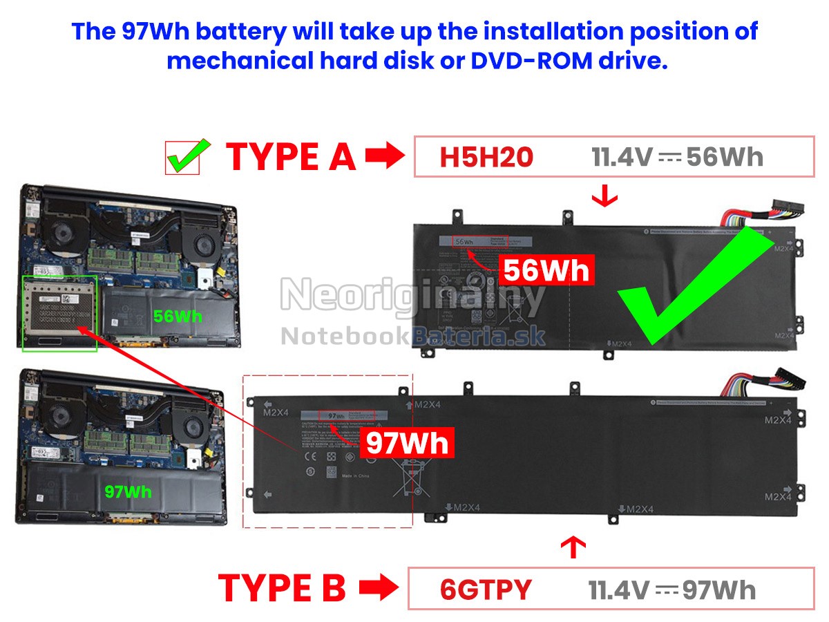 This is a high capacity(97Wh) battery,it's longer than the standard 56Wh battery, and it will take up the installation position of mechanical hard disk or DVD-ROM drive. You can use the 97Wh battery unless your laptop not installed the mechanical hard disk or DVD-ROM, otherwise please use the 56Wh battery.