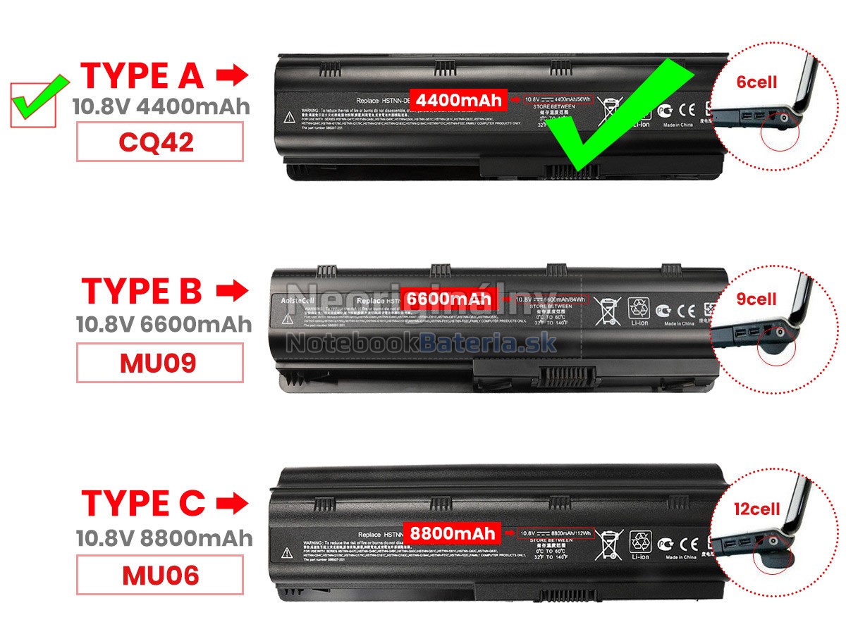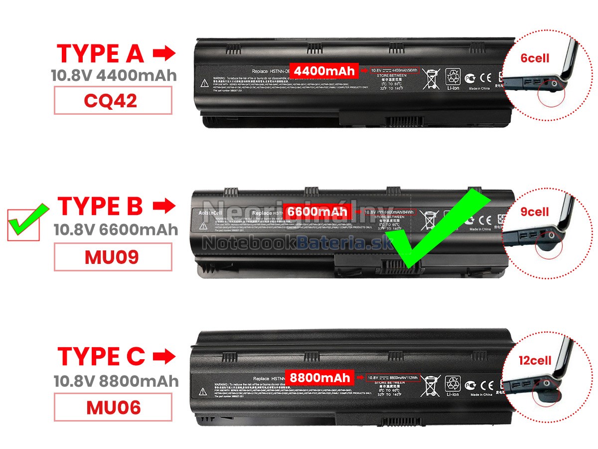 2. These replacement G42-358TU batteries are not compatible with HP Pavilion DV3-1000, DV3-2000 series and HP Pavilion DV6-1000, DV6-2000, DV6-7000, DV7-7000 Series laptops. 3. The 6600mAh(9 Cells) and 8800mAh(12 Cells) batteries will extend out about 1 inch from the bottom of the laptop, bigger size but help cooling and lasting longer.