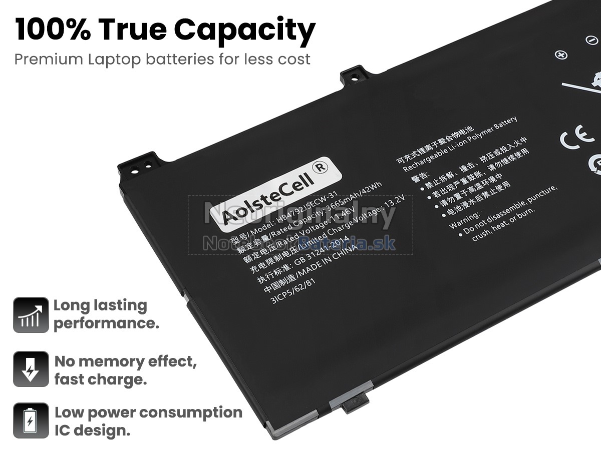 Každá z našich batérií pre notebooky Huawei BBR-WAH9 prešla certifikátmi EVPU, CE, GS, RoHS, ISO9001:2015 a ďalšími. Okrem toho, že sú plne kompatibilné, majú tiež inteligentné ochranné opatrenia proti preťaženiu, nadmernému vypúšťaniu a prehrievaniu kvôli väčšej bezpečnosti. Okrem toho je každá náhradná batérie Huawei BBR-WAH9 pred odchodom z továrne podrobená sérii testov. Na predaj sú povolené iba výrobky, ktoré spĺňajú špecifikácie.