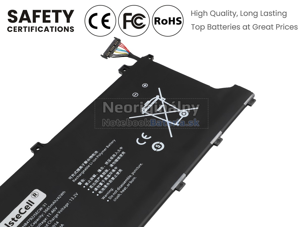 3Ak nebudete používať notebook Huawei po dlhú dobu, vyberte batéria BBR-WAH9 a uložte ju na chladnom a suchom mieste. Nezabudnite ho nabiť najmenej každé tri mesiace.
