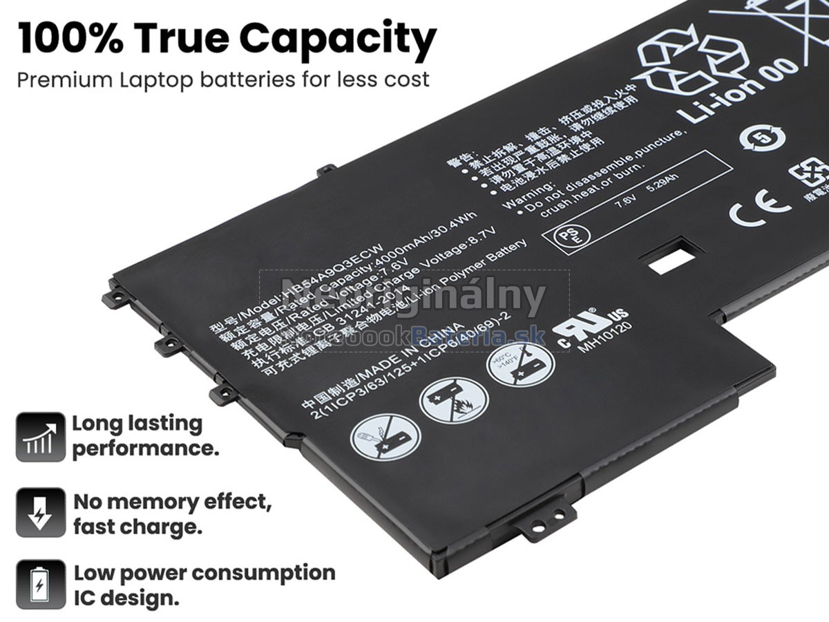 Každá z našich batérií pre notebooky Huawei WT-W19 prešla certifikátmi EVPU, CE, GS, RoHS, ISO9001:2015 a ďalšími. Okrem toho, že sú plne kompatibilné, majú tiež inteligentné ochranné opatrenia proti preťaženiu, nadmernému vypúšťaniu a prehrievaniu kvôli väčšej bezpečnosti. Okrem toho je každá náhradná batérie Huawei WT-W19 pred odchodom z továrne podrobená sérii testov. Na predaj sú povolené iba výrobky, ktoré spĺňajú špecifikácie.