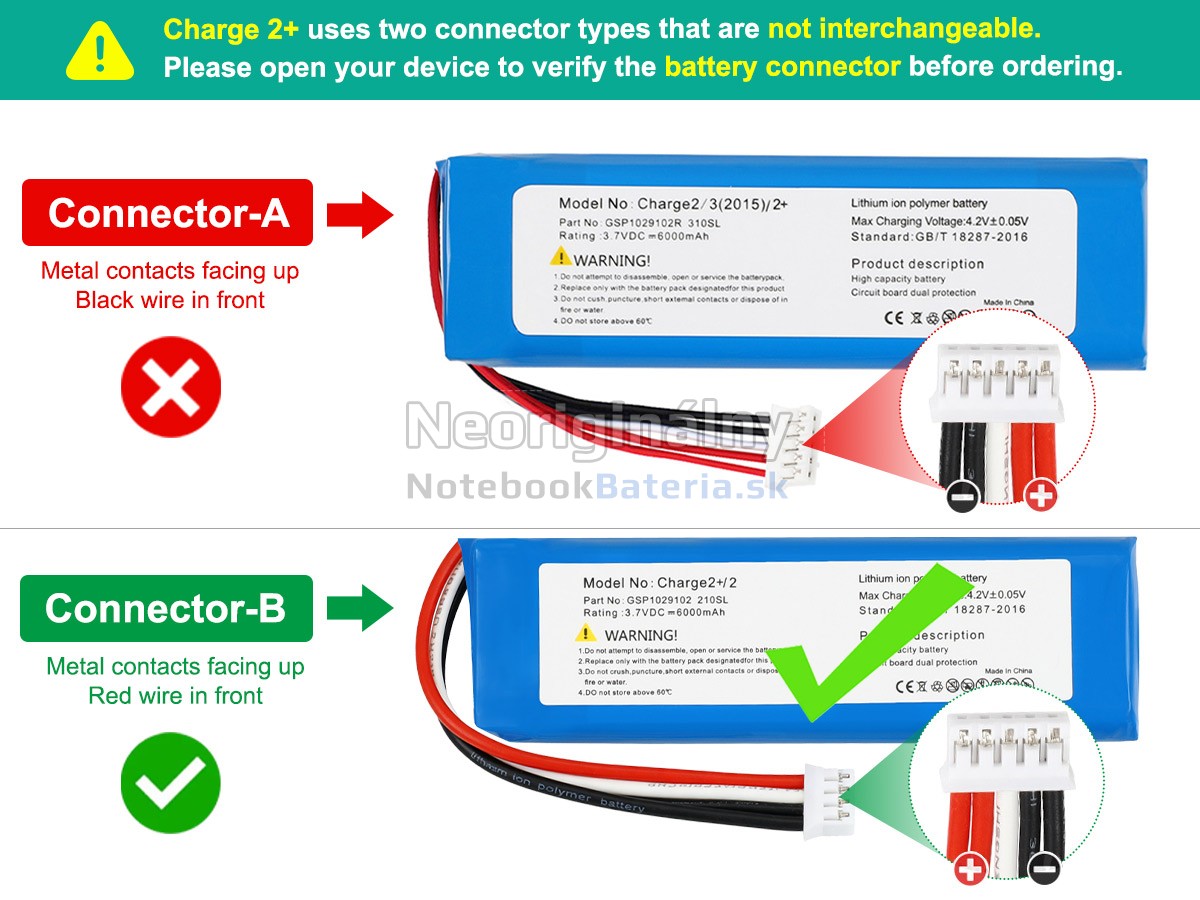 NotebookBateria.sk je profesionálny distribútor batérie, ktorý integruje výskum a vývoj, výrobu a predaj. Táto úplne nová náhradná batéria pre JBL CHARGE 2+ BLUETOOTH SPEAKER je vyrobená z vysoko kvalitných článkov triedy A+, originálneho dizajnu obvodu a krytu PC / ABS odolného voči vysokej teplote. Zabezpečením kvality sa výdrž batérie výrazne zlepšila.