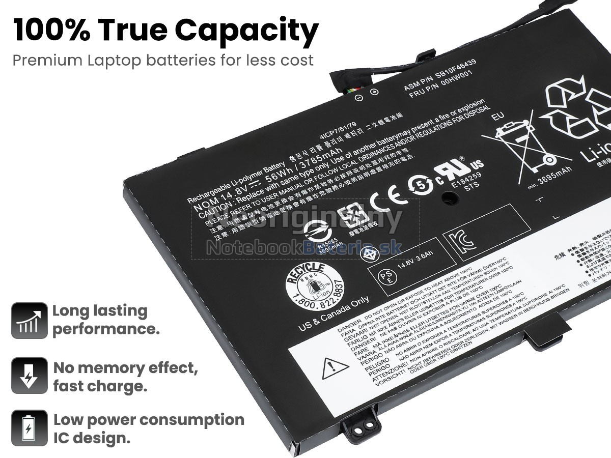 3Ak nebudete používať notebook Lenovo po dlhú dobu, vyberte batéria 00HW000 a uložte ju na chladnom a suchom mieste. Nezabudnite ho nabiť najmenej každé tri mesiace.