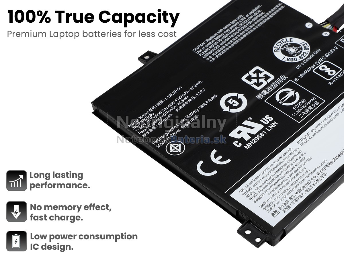 3Ak nebudete používať notebook Lenovo po dlhú dobu, vyberte batéria 82CD000XUS a uložte ju na chladnom a suchom mieste. Nezabudnite ho nabiť najmenej každé tri mesiace.