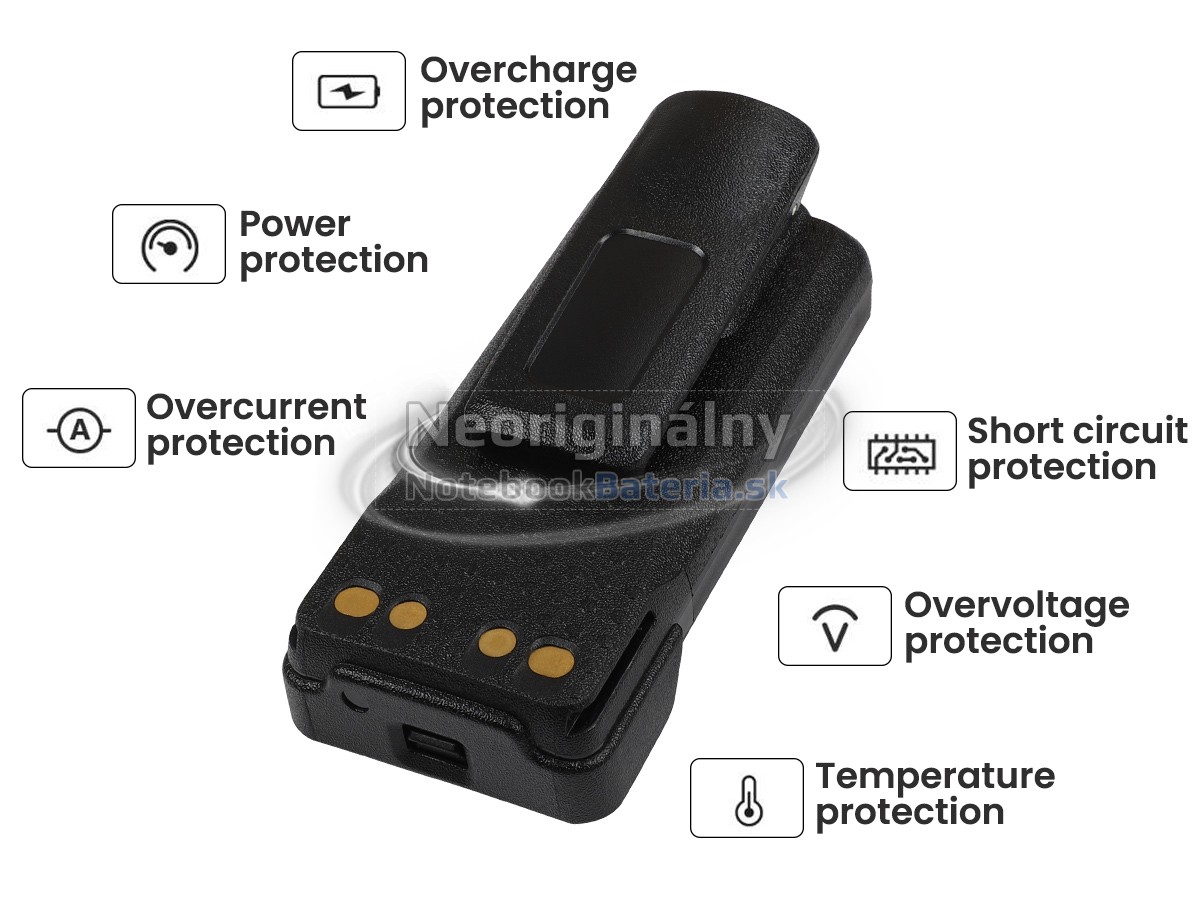 Každá z našich batérií pre Motorola PMNN4409AR prešla certifikátmi EVPU, CE, GS, RoHS, ISO9001:2015 a ďalšími. Okrem toho, že sú plne kompatibilné, majú tiež inteligentné ochranné opatrenia proti preťaženiu, nadmernému vypúšťaniu a prehrievaniu kvôli väčšej bezpečnosti. Okrem toho je každá náhradná batérie Motorola PMNN4409AR pred odchodom z továrne podrobená sérii testov. Na predaj sú povolené iba výrobky, ktoré spĺňajú špecifikácie.