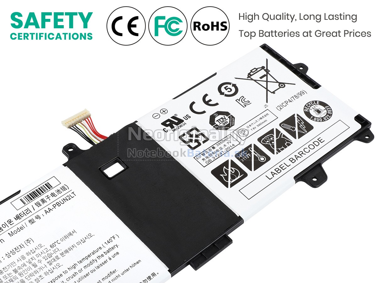 Každá z našich batérií pre notebooky Samsung AA-PBUN2QT prešla certifikátmi EVPU, CE, GS, RoHS, ISO9001:2015 a ďalšími. Okrem toho, že sú plne kompatibilné, majú tiež inteligentné ochranné opatrenia proti preťaženiu, nadmernému vypúšťaniu a prehrievaniu kvôli väčšej bezpečnosti. Okrem toho je každá náhradná batérie Samsung AA-PBUN2QT pred odchodom z továrne podrobená sérii testov. Na predaj sú povolené iba výrobky, ktoré spĺňajú špecifikácie.
