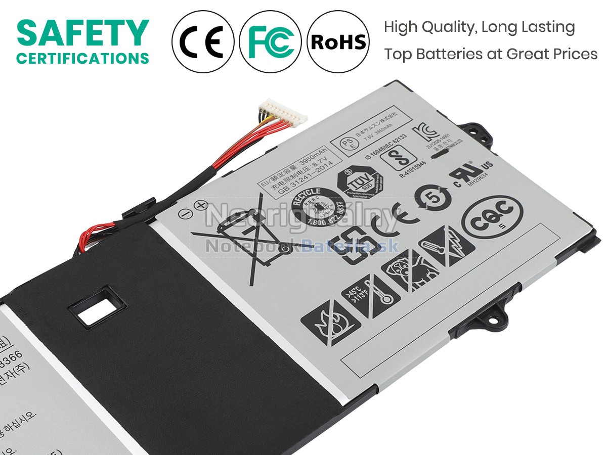 Každá z našich batérií pre notebooky Samsung NP900X3NI prešla certifikátmi EVPU, CE, GS, RoHS, ISO9001:2015 a ďalšími. Okrem toho, že sú plne kompatibilné, majú tiež inteligentné ochranné opatrenia proti preťaženiu, nadmernému vypúšťaniu a prehrievaniu kvôli väčšej bezpečnosti. Okrem toho je každá náhradná batérie Samsung NP900X3NI pred odchodom z továrne podrobená sérii testov. Na predaj sú povolené iba výrobky, ktoré spĺňajú špecifikácie.