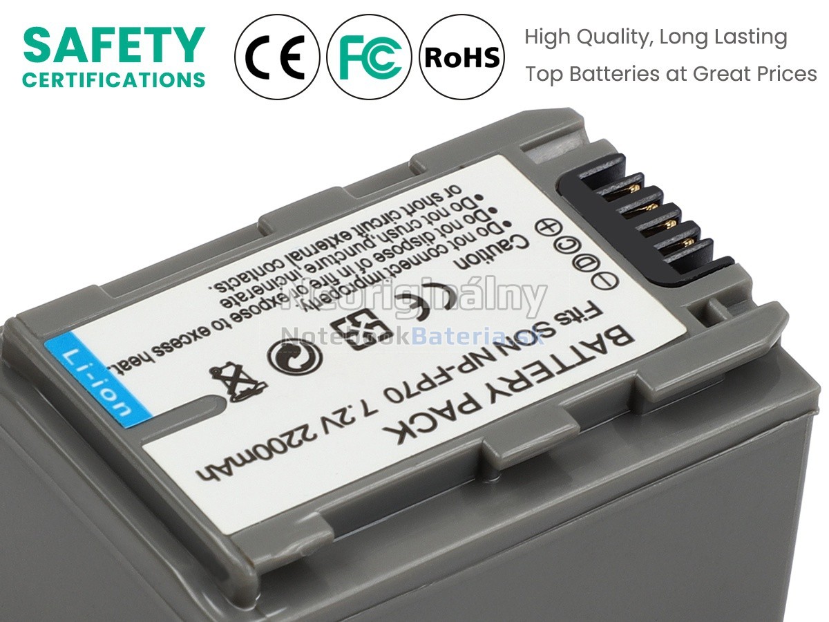 Každá z našich batérií pre digitálny fotoaparát Sony NP-FP71 prešla certifikátmi EVPU, CE, GS, RoHS, ISO9001:2015 a ďalšími. Okrem toho, že sú plne kompatibilné, majú tiež inteligentné ochranné opatrenia proti preťaženiu, nadmernému vypúšťaniu a prehrievaniu kvôli väčšej bezpečnosti. Okrem toho je každá náhradná batérie Sony NP-FP71 pred odchodom z továrne podrobená sérii testov. Na predaj sú povolené iba výrobky, ktoré spĺňajú špecifikácie.